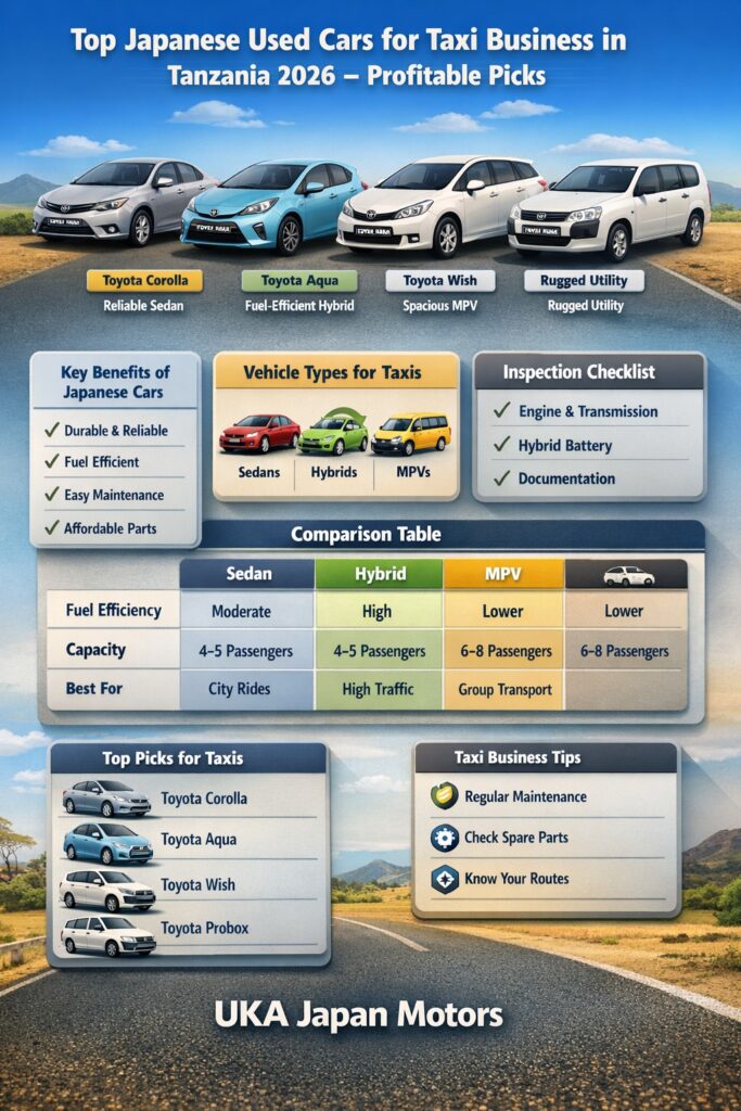 Introduction Starting or expanding a taxi business in Tanzania requires more than just a vehicle—it demands a carefully selected car that can withstand daily pressure, unpredictable road conditions, and long hours of operation. In cities like Dar es Salaam and Arusha, taxis face heavy traffic, frequent stop-and-go driving, and varying road surfaces. Japanese used cars continue to dominate the taxi sector because of their reliability, ease of maintenance, and compatibility with local conditions. But not every model performs equally well...